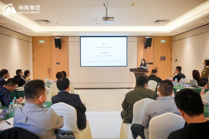 闽海集团董事长丁剑扬首先阐释了全新【企业文化价值观】的深刻内涵,强调了文化引领的重要性。随后,人力资源部总监周婧呼吁管理层以身作则,积极践行企业价值观。