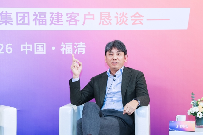在恳谈会的重要环节,闽海集团董事长兼总裁丁剑扬围绕 “诚信、务实、合规、服务” 四大关键词,与在场客户进行了真挚而深刻的交流。