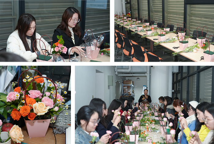 午后,花艺DIY沙龙如约开启。女神们在专业花艺师的指导下,执起花枝,修剪、搭配、构思……每一只花篮,都是她们用心创作的春日诗篇。创作完成后,惬意的茶歇时光接踵而至。精致甜点与香醇茶饮相伴左右,大家三五成群,在花香与茶香的交融中,尽情享受着难得的悠闲时刻。